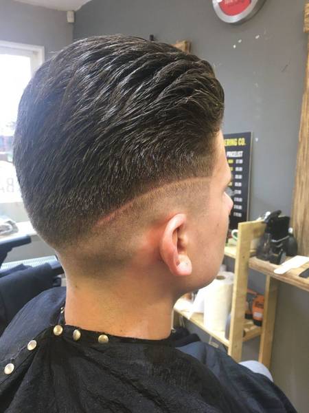 Skin fade slick back hair done by Ryan #ccbarberingco